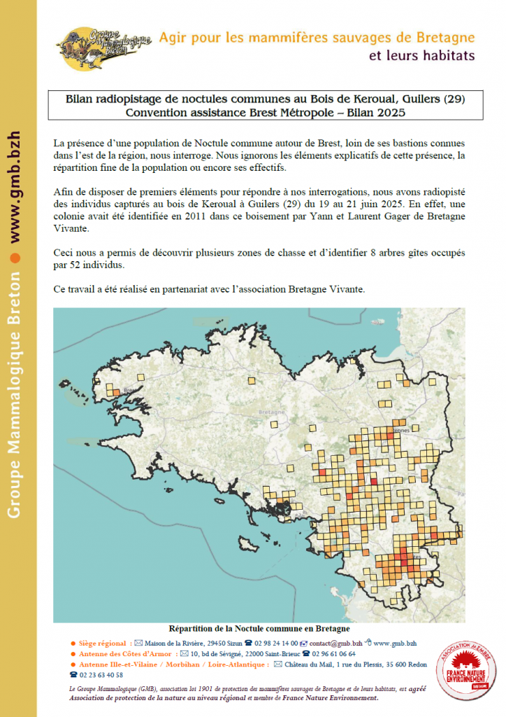 Le Contrat Nature « Observatoire des Chauves-souris de Bretagne (2013-2016) », programme pluriannuel cofinancé par le Conseil Régional de Bretagne et les Conseils Départementaux des Côtes d’Armor, du Finistère, de...