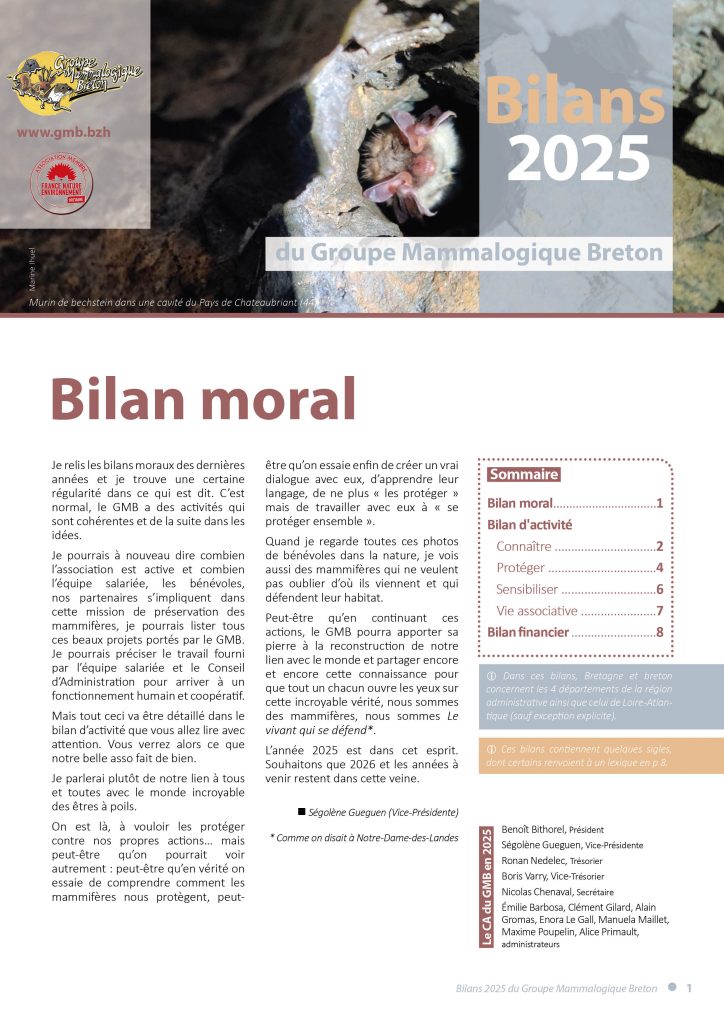 Le Groupe Mammalogique Breton (GMB) est une association régionale d’étude et de protection des Mammifères sauvages de Bretagne agréée au titre de la protection de la nature et de l’environnement....